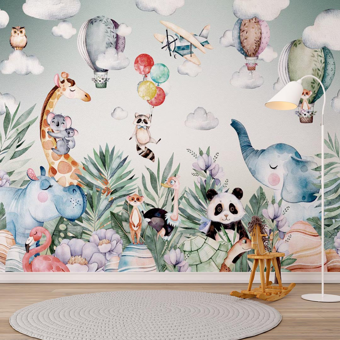 Fototapeta dla dzieci Kreskówka Afrykańskie Safari Śliczne Zwierzęta Tapeta do pokoju dziecięcego