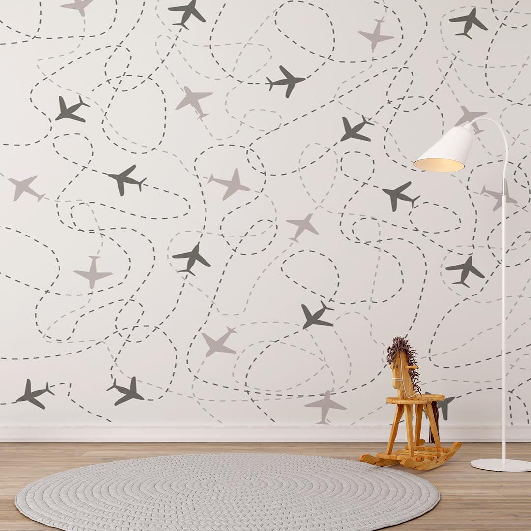 Naklejka dla dzieci Sylwetka samolotu i nieba Wzór Tapeta dla dzieci