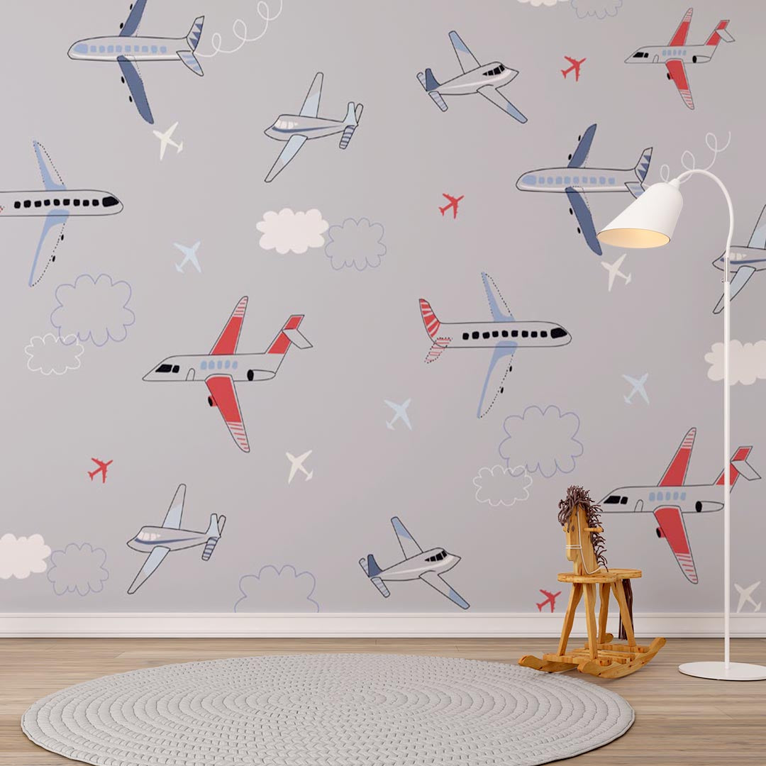 Naklejka dla dzieci Tapeta z wzorem nieba samolotu dla dzieci
