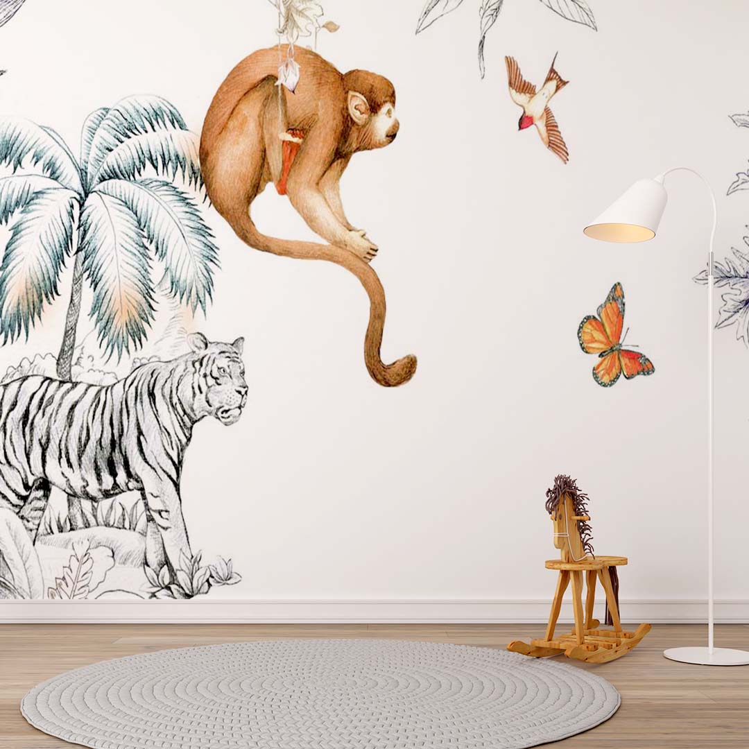 Naklejka dla dzieci Urocza małpa Tapeta do pokoju dziecięcego