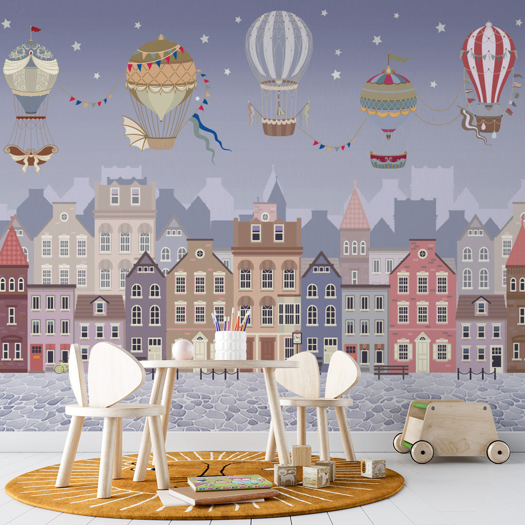 Naklejka dla dzieci Nocne niebo Stary Rynek Budynki Balon Tapeta dla dziewczynki