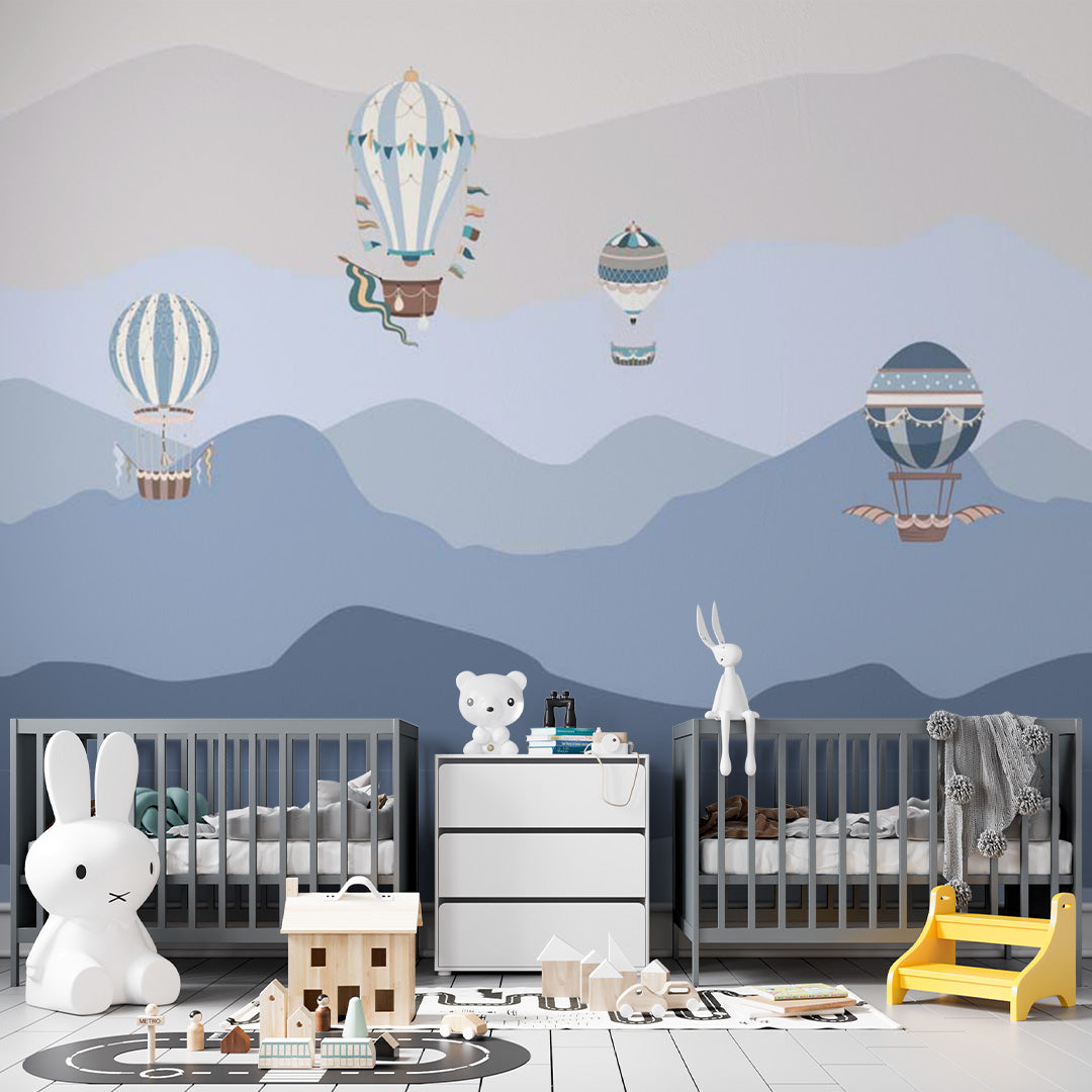 Fototapety dla dzieci Góry Błękitne i balony z sylwetkami Tapety dla dzieci