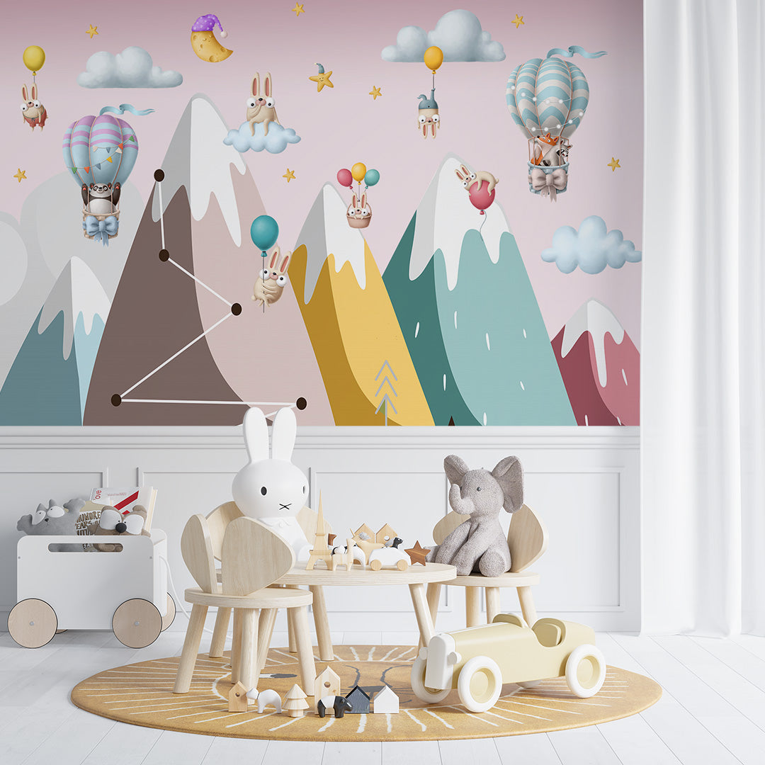 Fototapety dla dzieci Gliniane zwierzęta Góry Przygoda Balon Tapeta dla dzieci