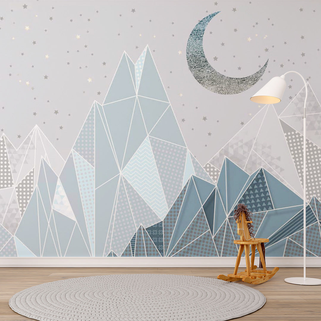 Fototapety dla dzieci Kryształowe Błękitne Góry Gwiazdy Niebo Księżyc Tapeta dla dzieci