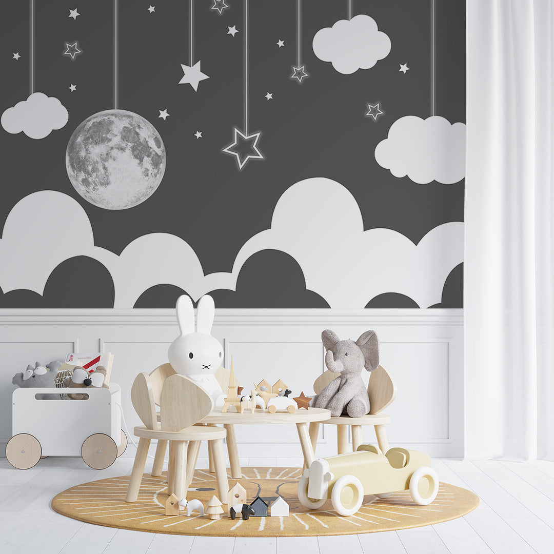 Fototapety dla dzieci Czarno-biała tapeta w pełni księżyca dla dzieci