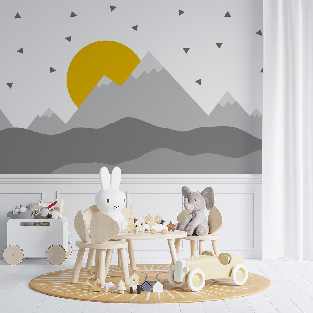Fototapety dla dzieci Skandynawskie czarne żółte góry Tapety do pokoju dziecięcego dla dzieci