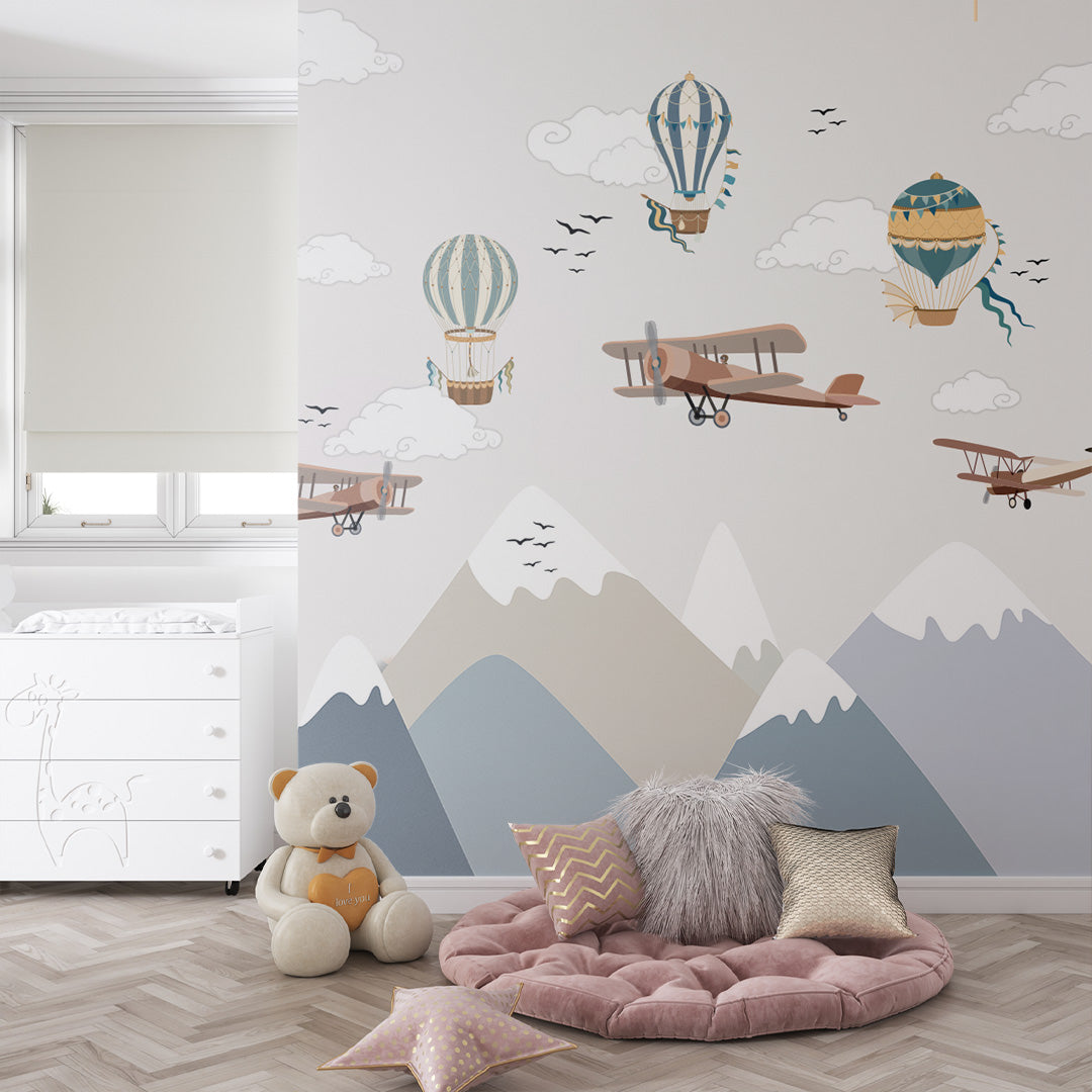 Fototapety dla dzieci Vintage Samoloty Góry Samoloty Tapety dla dzieci