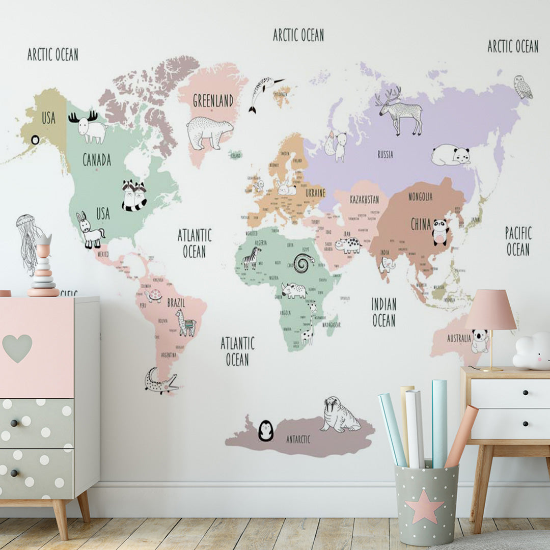 Mapa świata dla dzieci dla małych dzieci Fototapety Naklejki Plakaty Globus Tapety dla dzieci
