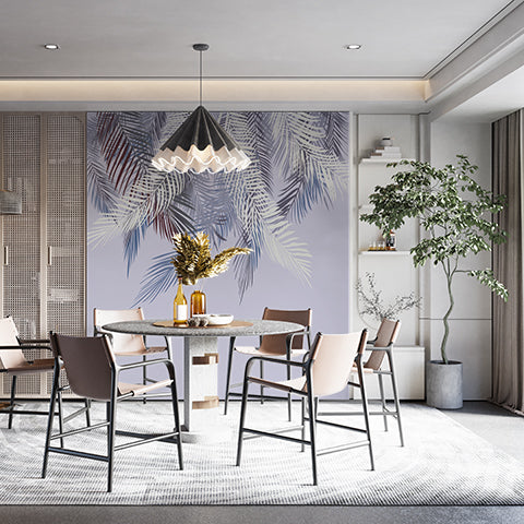 Fototapeta z motywem lawendy i liści palmowych Tropikalna tapeta botaniczna