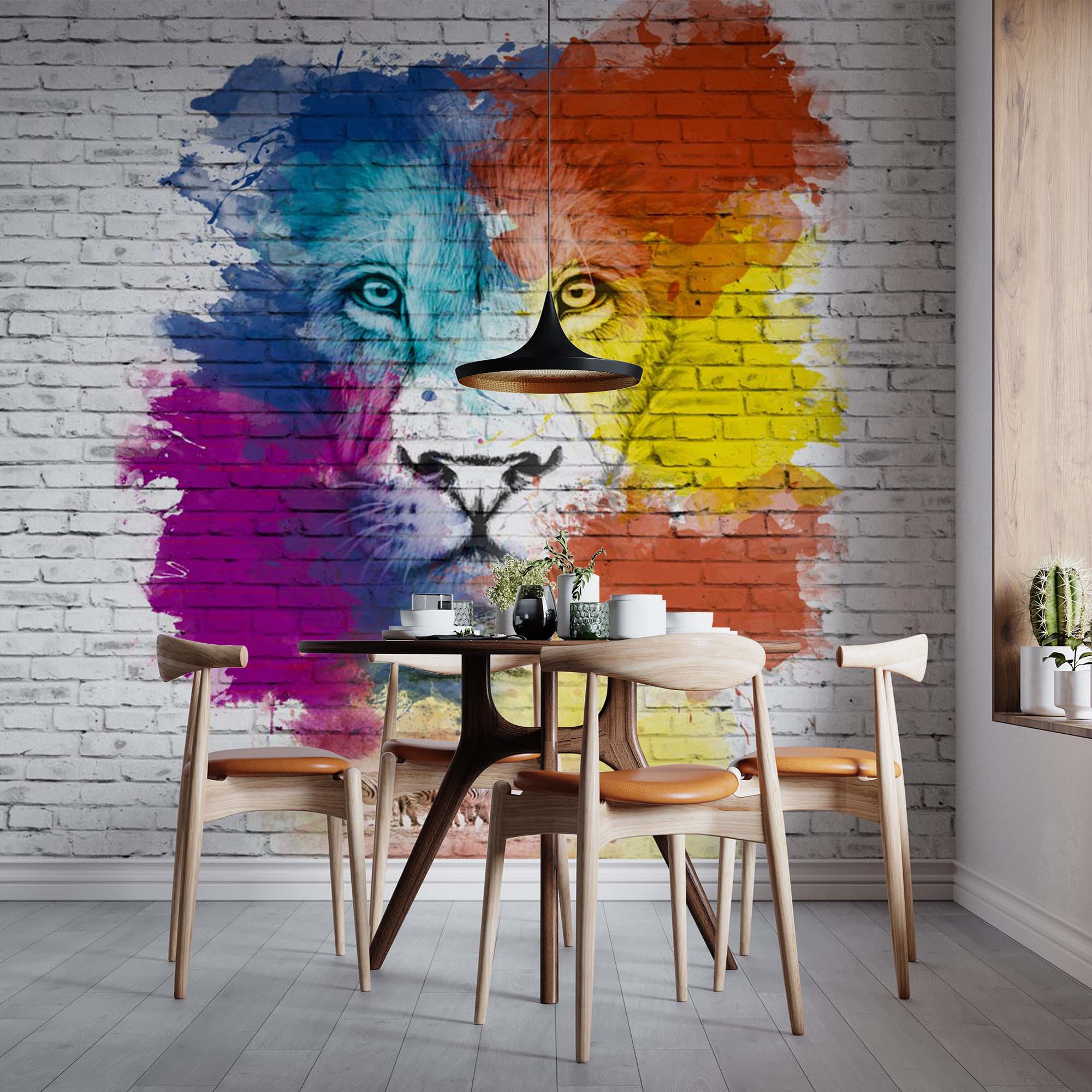Fototapeta z głową lwa Kolorowa tapeta z cegły Savannah