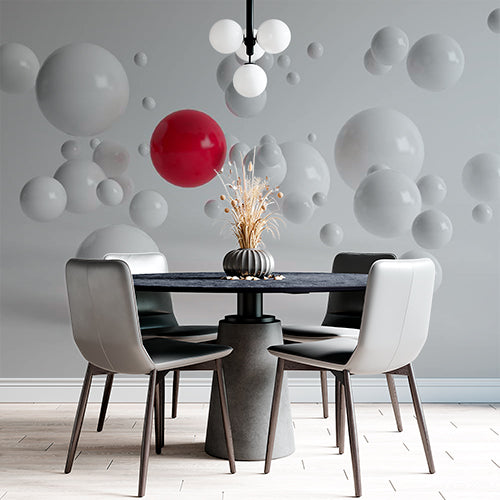 Minimalistyczna fototapeta 3D z białymi i czerwonymi kulami - nowoczesny abstrakcyjny wzór