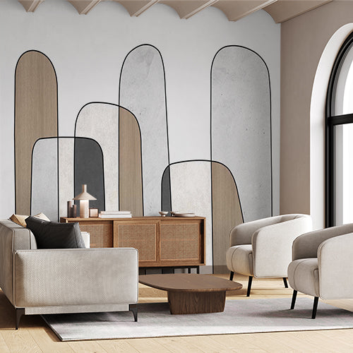 Minimalistyczna tapeta z abstrakcyjnymi łukami w neutralnych odcieniach