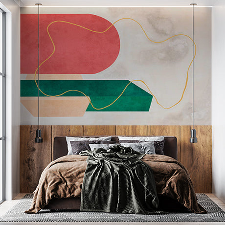 Nowoczesna tapeta abstrakcyjna z geometrycznymi kształtami i złotymi akcentami