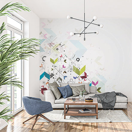 Nowoczesne abstrakcyjne kształty geometryczne i koła zębate fototapeta - futurystyczny pastelowy wzór
