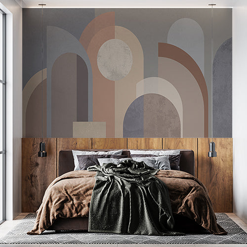 Nowoczesna tapeta Art Deco z łukami w odcieniach ziemi