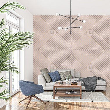 Nowoczesna tapeta z geometrycznym wzorem w jodełkę w kolorze miękkiej brzoskwini