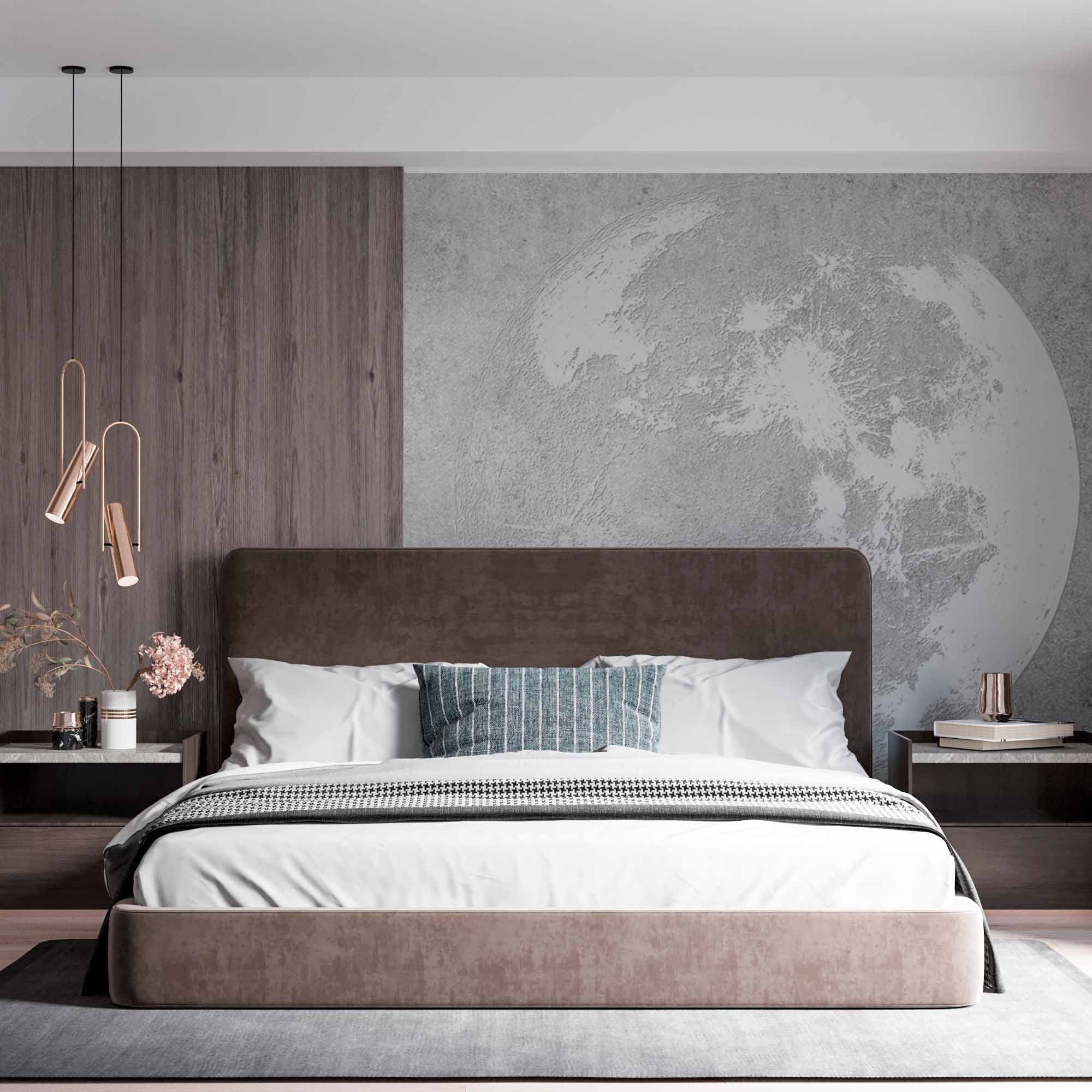Nowoczesna, minimalistyczna fototapeta z księżycem - teksturowane szare tło