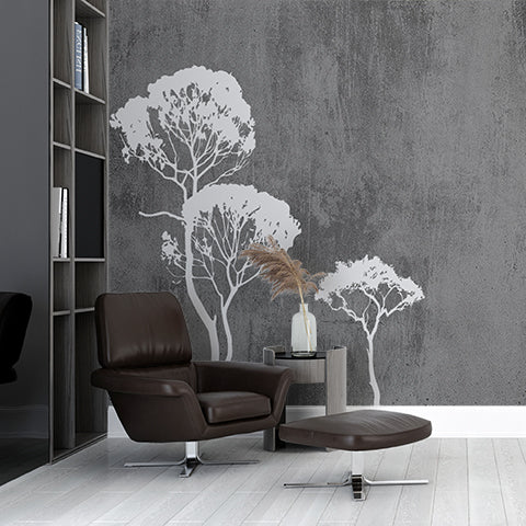 Nowoczesne, minimalistyczne białe drzewa na szarym tle fototapeta Tapeta