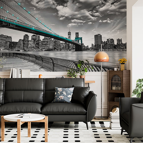 Monochromatyczna fototapeta Nowy Jork - Most Brookliński z turkusowymi światłami