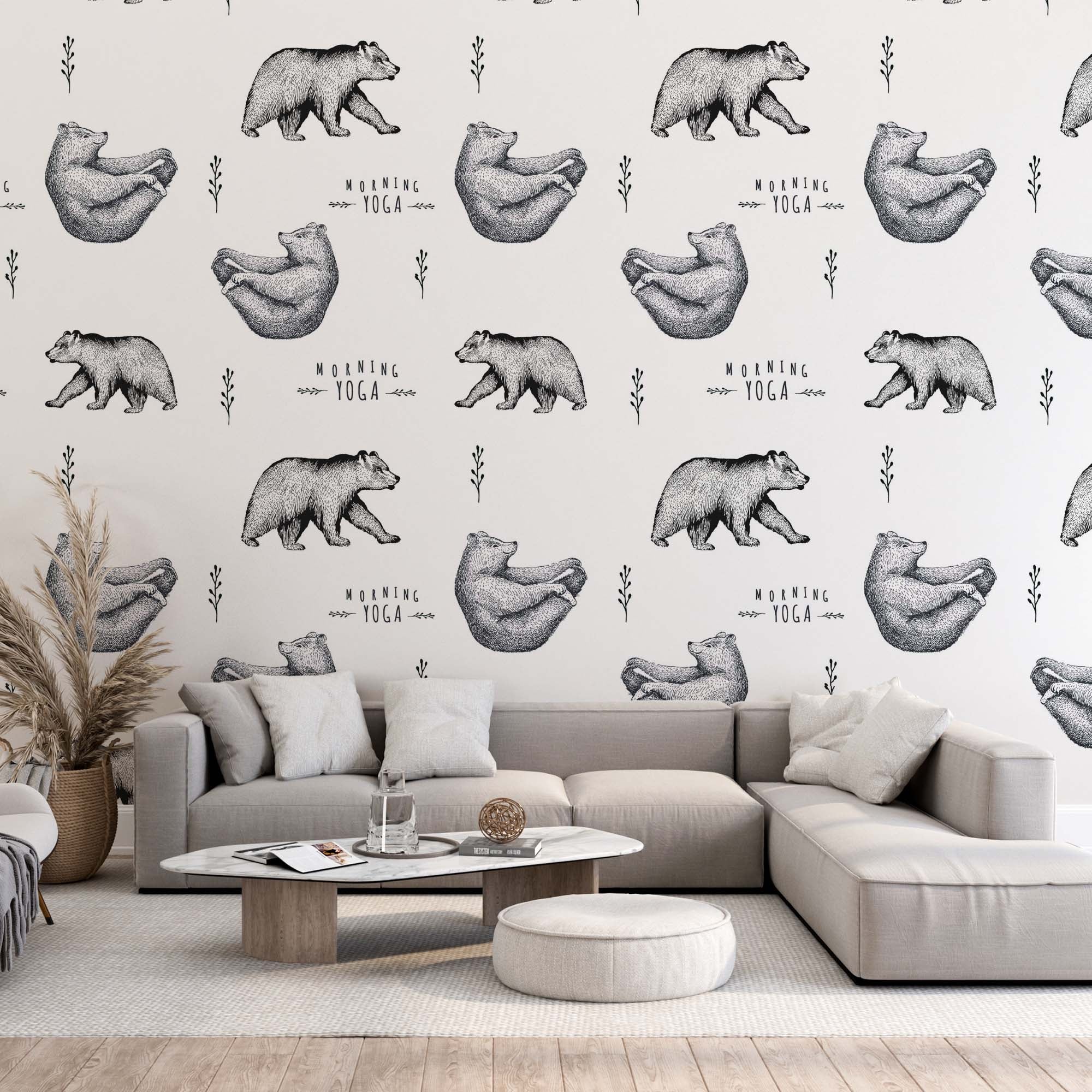 Poranna joga niedźwiedzie fototapeta zwierzęta skandynawska tapeta