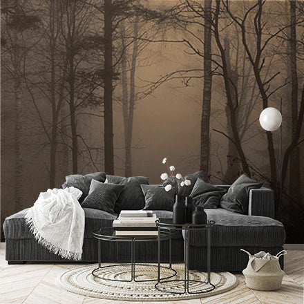 Mistyczny mglisty las o zmierzchu Tapeta na wymiar