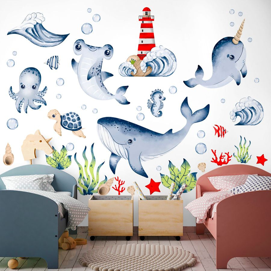 Dostępne w różnych rozmiarach, aby idealnie ozdobić różne przestrzenie ścienne, te naklejki są wykonane z wysokiej jakości materiałów winylowych. Rozbudź w swoim dziecku fascynację życiem morskim, wzbudzając w nim poczucie zachwytu i edukacji dzięki tym żywym, realistycznym i urzekającym projektom.