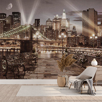 Naklejka na ścianę nocny krajobraz Nowego Jorku - Most Brookliński i panoramę miasta w świetle księżyca