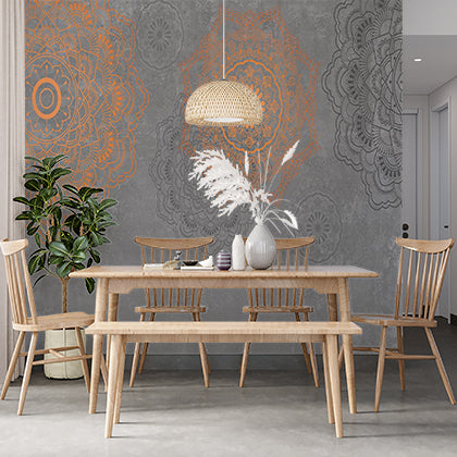 Tapeta ze wzorem pomarańczowej i szarej mandali