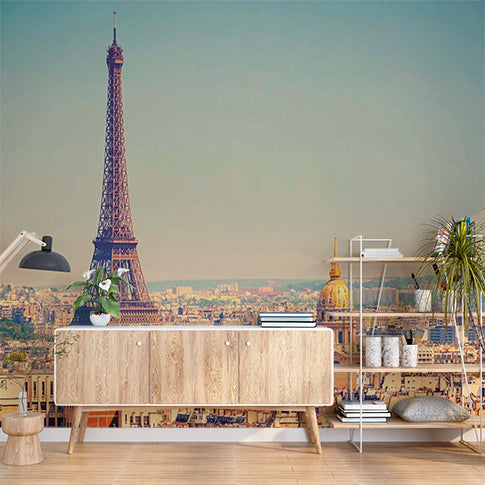 Pejzaż Paryża w ciepłych kolorach Naklejka na ścianę Wieża Eiffla