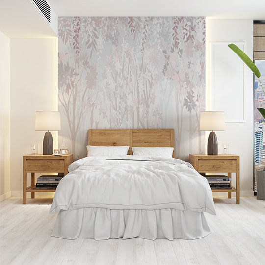 Pastelowa fototapeta z kwiatowymi i liściastymi lasami