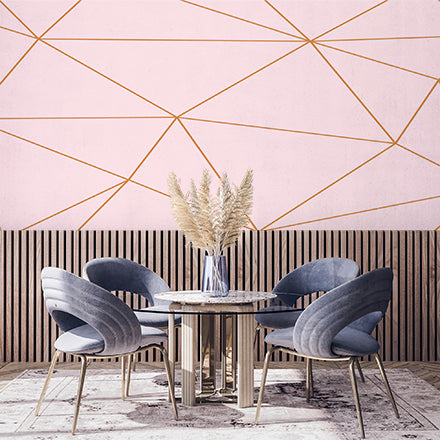 Pastelowa różowa tapeta geometryczna z miedzianymi liniami