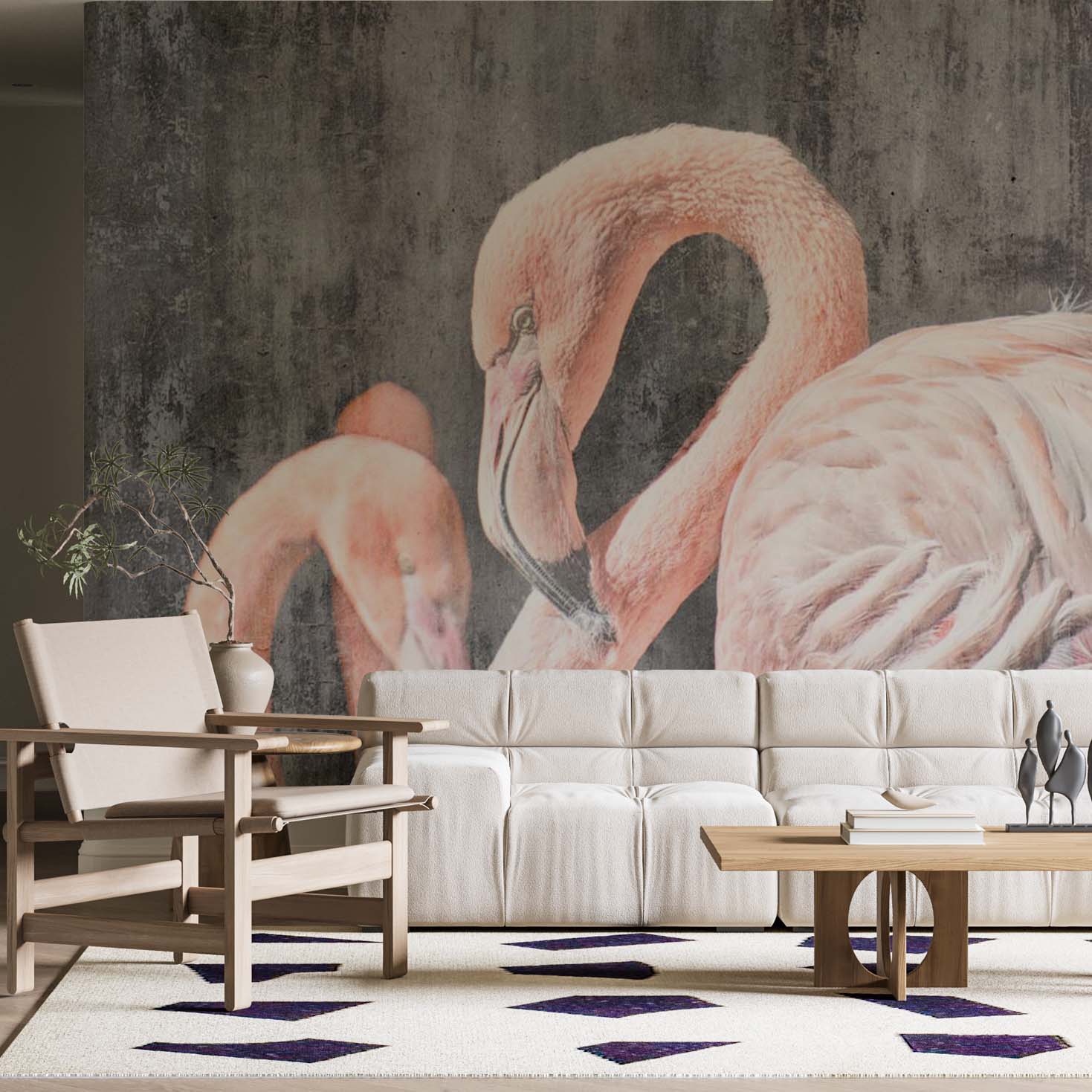 Różowe flamingi Tropikalne zwierzęta Fototapeta Stara tapeta z teksturą betonu cementowego