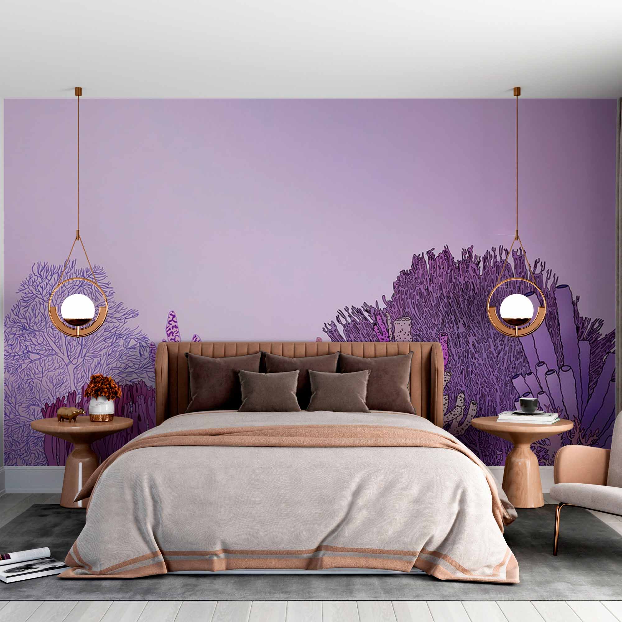 Fioletowa fototapeta z rafą koralową Tapeta z roślinami wodnymi