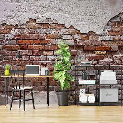 Rustykalny odsłonięty mur z cegieł z wyblakłymi fototapetami gipsowymi
