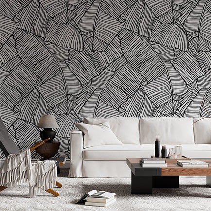 Bezszwowe wzory z liśćmi palmowymi Tapeta Czarno-biała fototapeta z konturem liścia