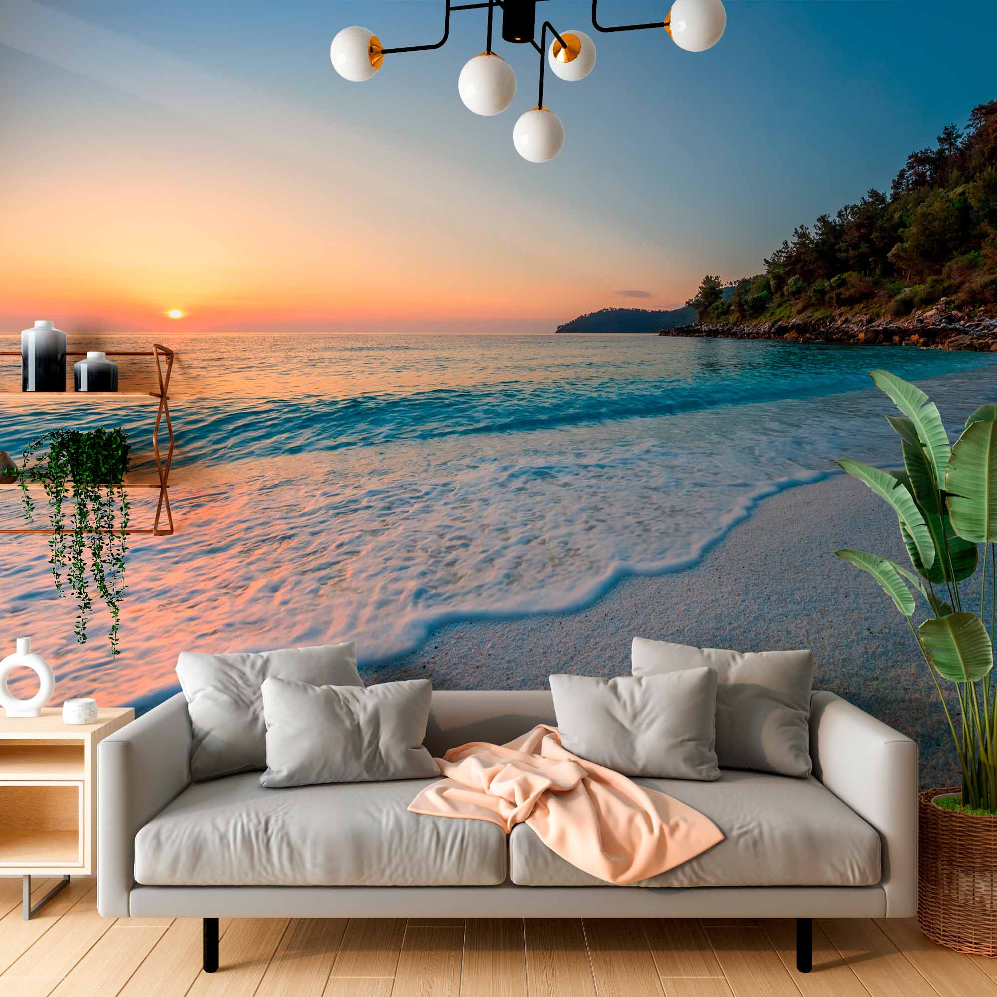 Tapeta na ścianę Spokojny zachód słońca na plaży z delikatnymi falami