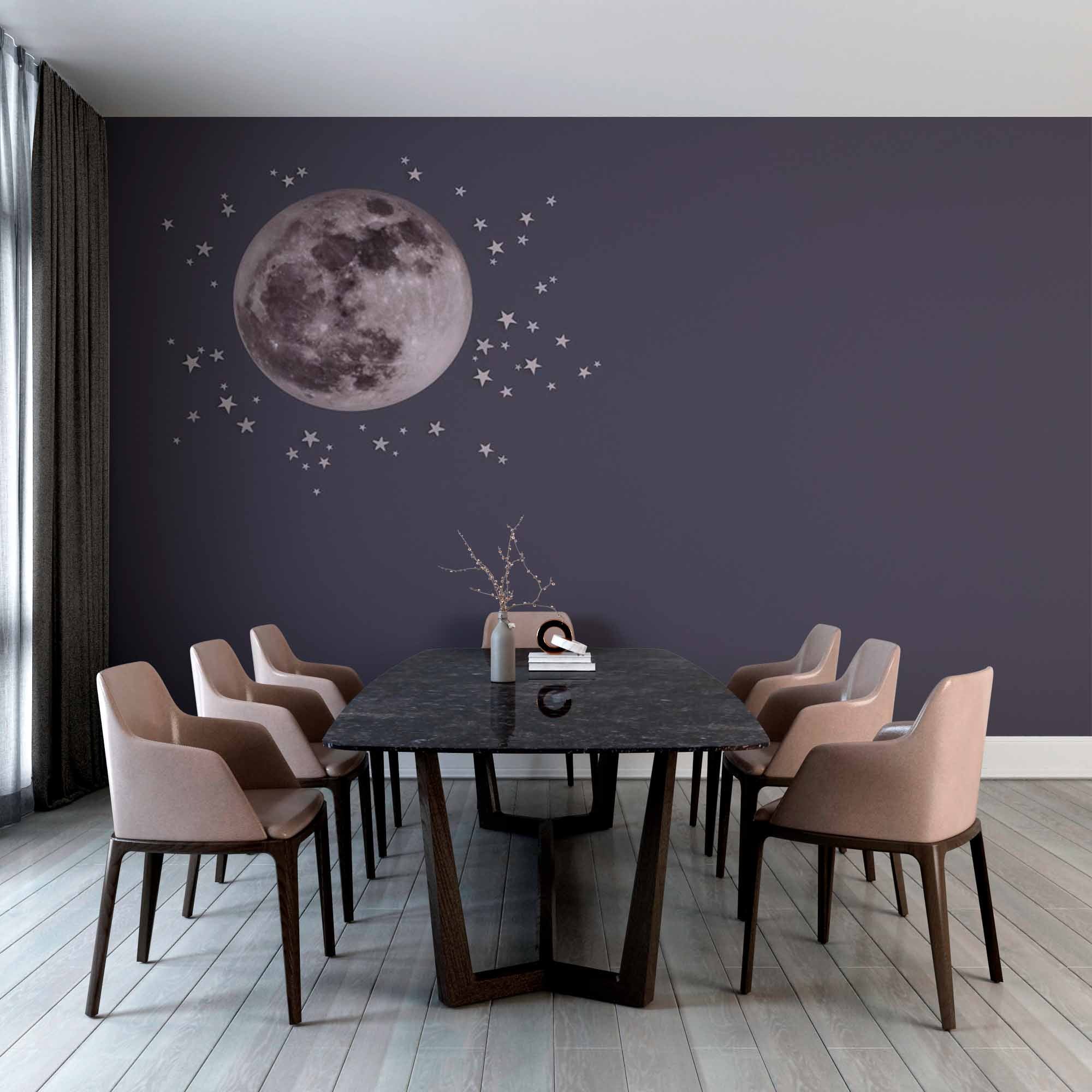 Spokojna fototapeta z pełnią księżyca z gwiazdami na ciemnoszarym tle