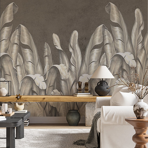 Srebrna tapeta z liśćmi bananowca Abstrakcyjna fototapeta