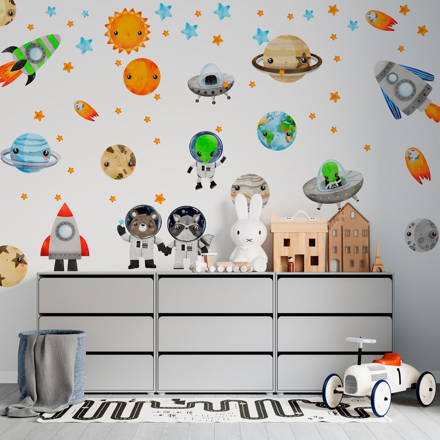 Dostępne w różnych rozmiarach, aby idealnie ozdobić różne przestrzenie ścienne, te naklejki są starannie wykonane z najwyższej jakości materiałów winylowych. Rozbudź w swoim dziecku ciekawość i fascynację eksploracją kosmosu dzięki tym żywym, edukacyjnym i czarującym projektom.