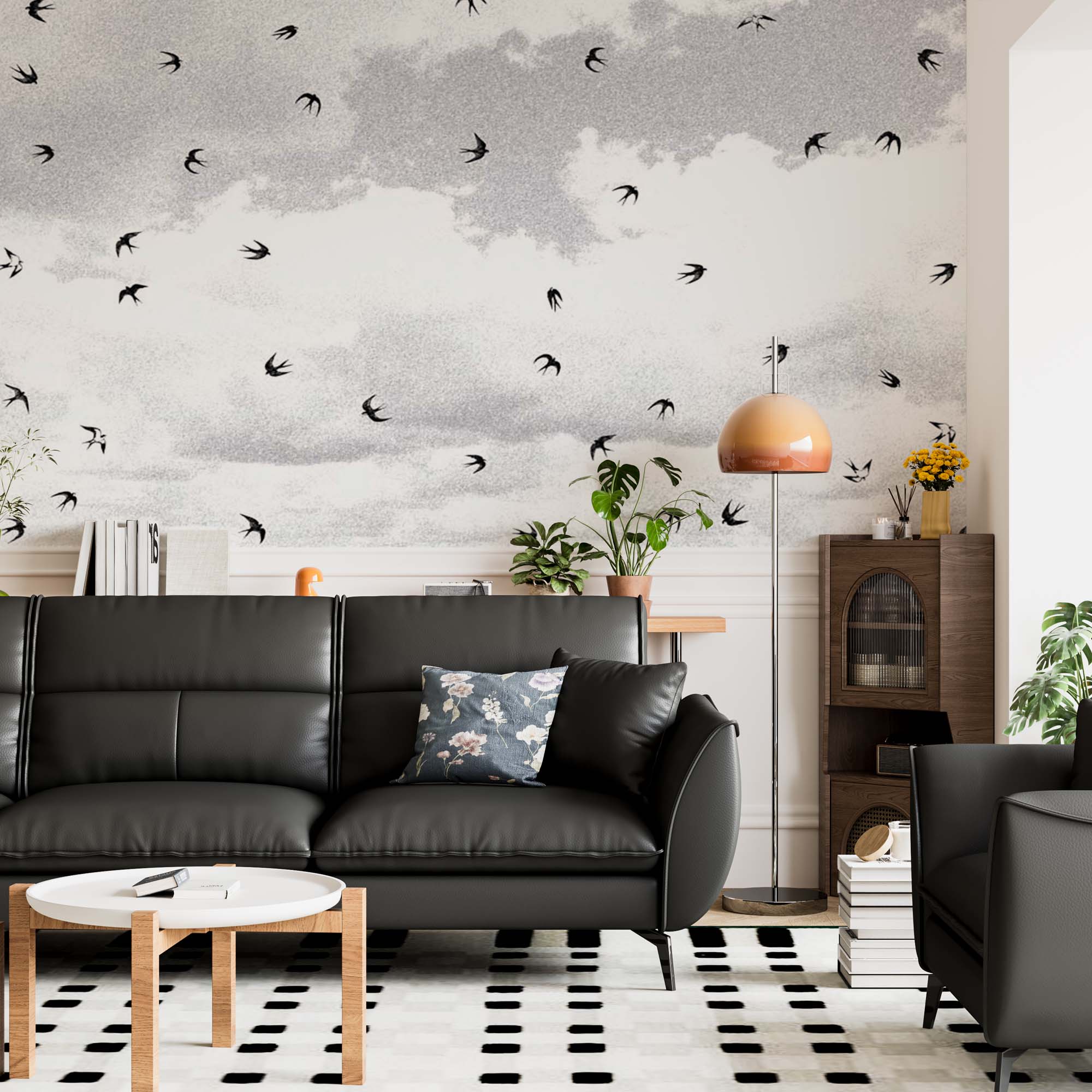 Jaskółki Lot Czarno-białe Ptaki Tapety Zwierzęta Fototapeta