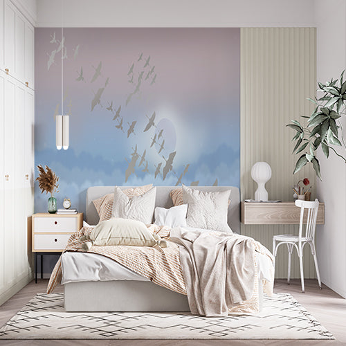 Spokojne księżycowe niebo z ptakami Tapeta ścienna