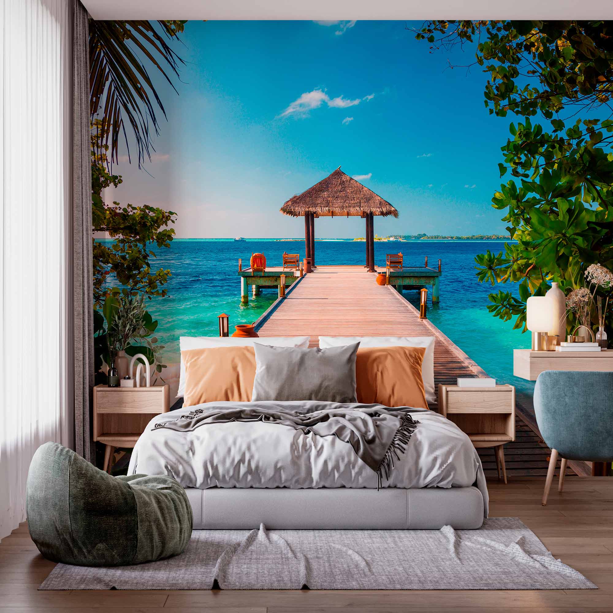 Tropikalne molo z altaną pokrytą strzechą Tapeta ścienna
