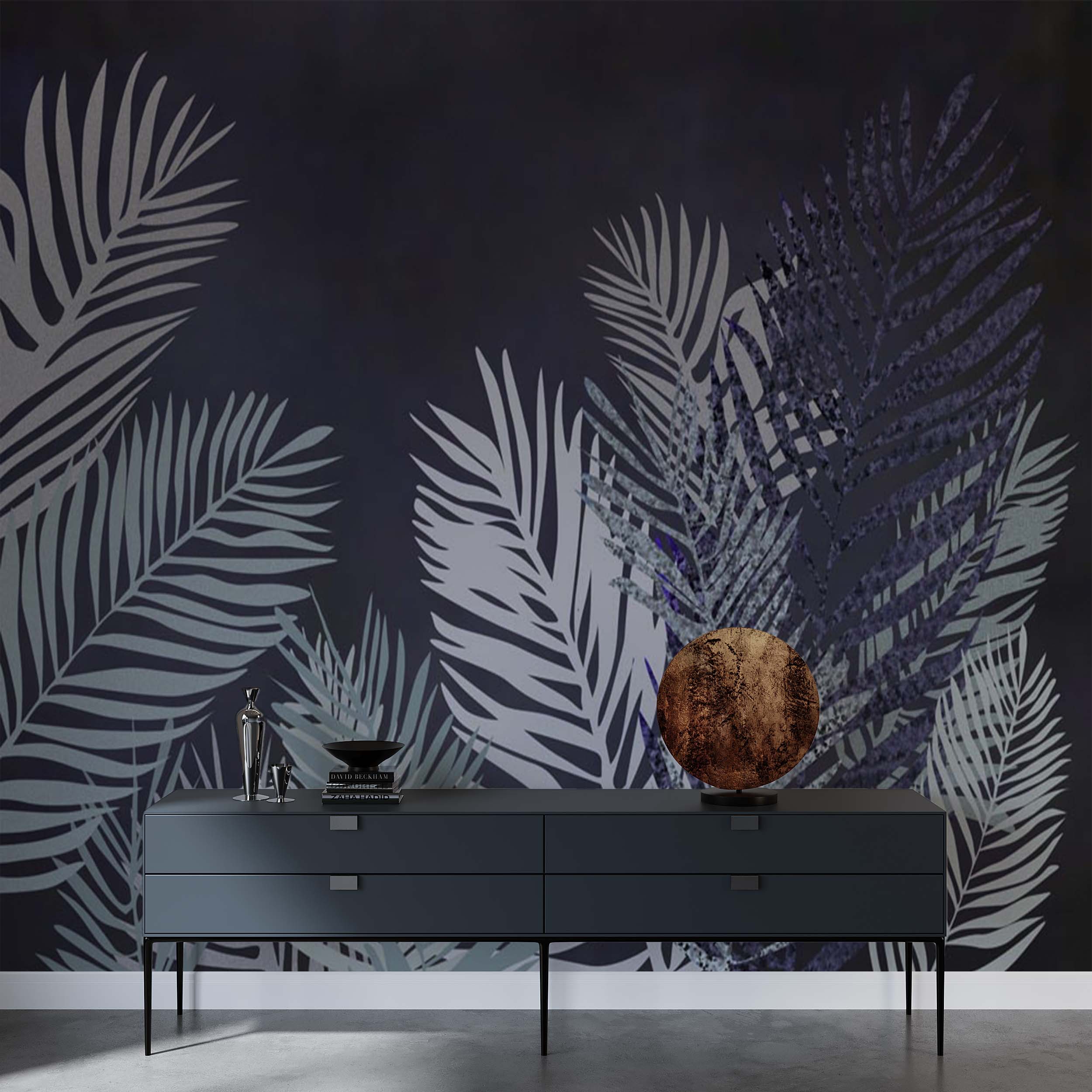 Bring a touch of tropical paradise into your home with this captivating palm leaf wallpaper. This design features a lush arrangement of stylized palm leaves in varying shades of blue and white against a deep, textured blue background. The vibrant contrast and detailed botanical illustrations create a sense of depth and visual interest, adding a touch of exotic elegance to any space. This wallpaper is perfect for creating a statement wall in a living room, bedroom, or dining room, or for adding a touch of tropical flair to a bathroom or dressing room. Printed on high-quality, durable wallpaper material, this design is easy to install and maintain. Let this palm leaf wallpaper transport you to a luxurious tropical getaway.