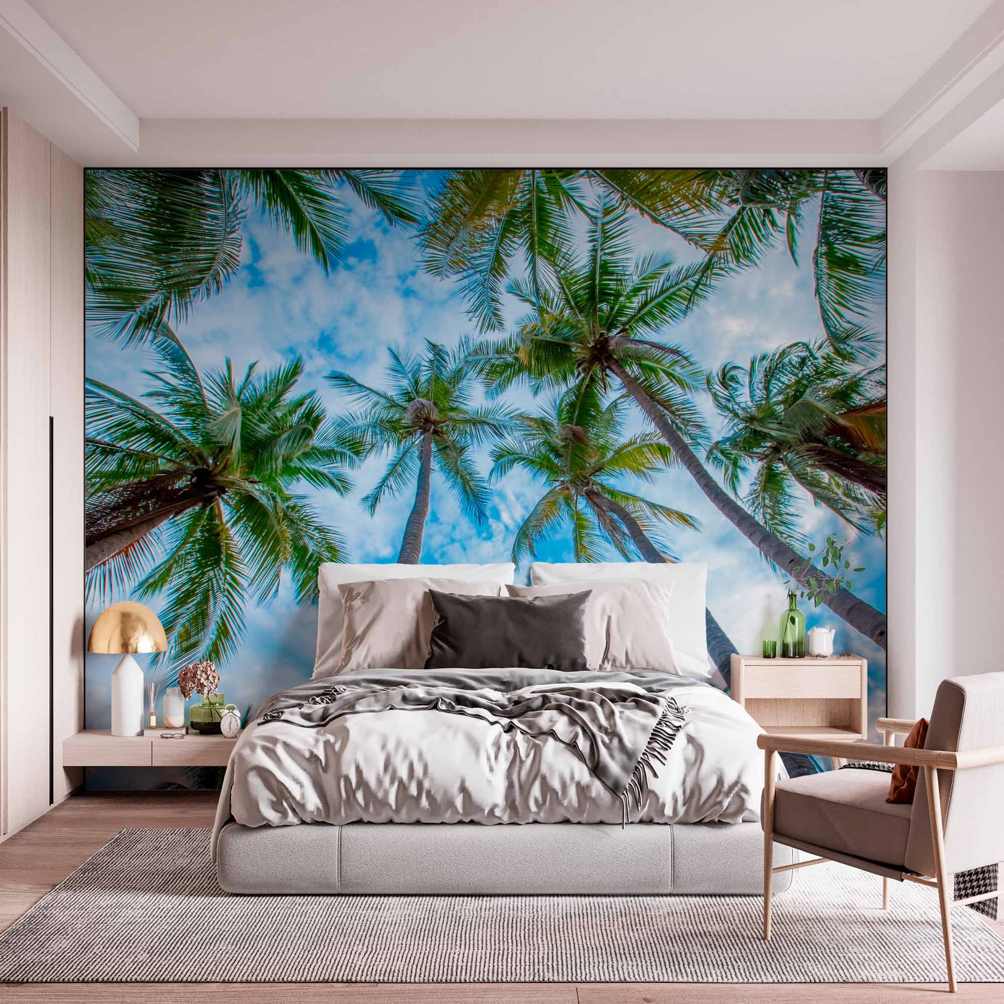 Widok z góry na palmy na tle błękitnego nieba Tapeta ścienna
