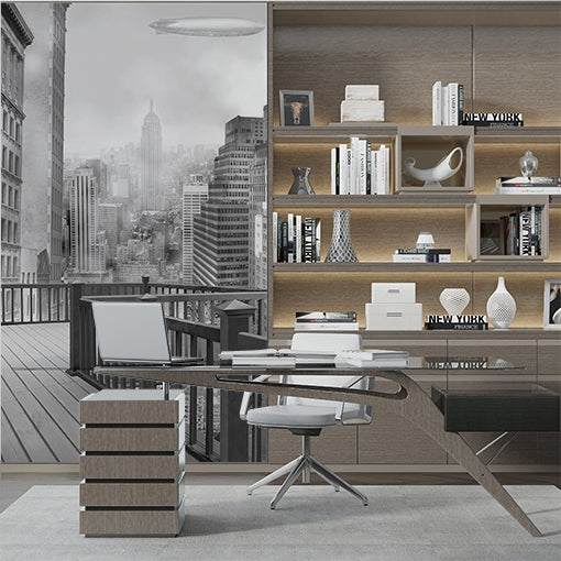 Widok na miejski balkon z Empire State Building na czarno-białych fototapetach