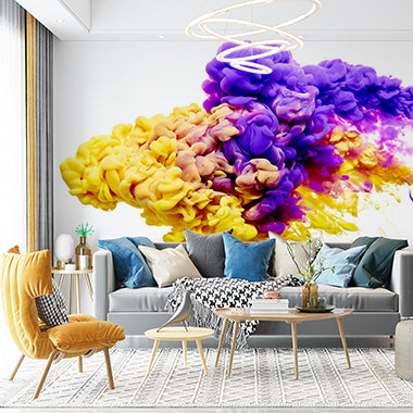 Żywa abstrakcyjna chmura atramentu z fototapetami w kolorach żółtym i fioletowym