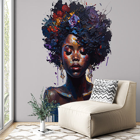 Żywa, afrocentryczna fototapeta portretowa - kolorowa, kwiatowa sztuka włosów