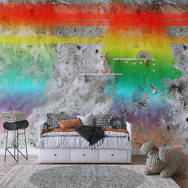Żywe smugi tęczy i plamy na betonowych fototapetach w stylu grunge