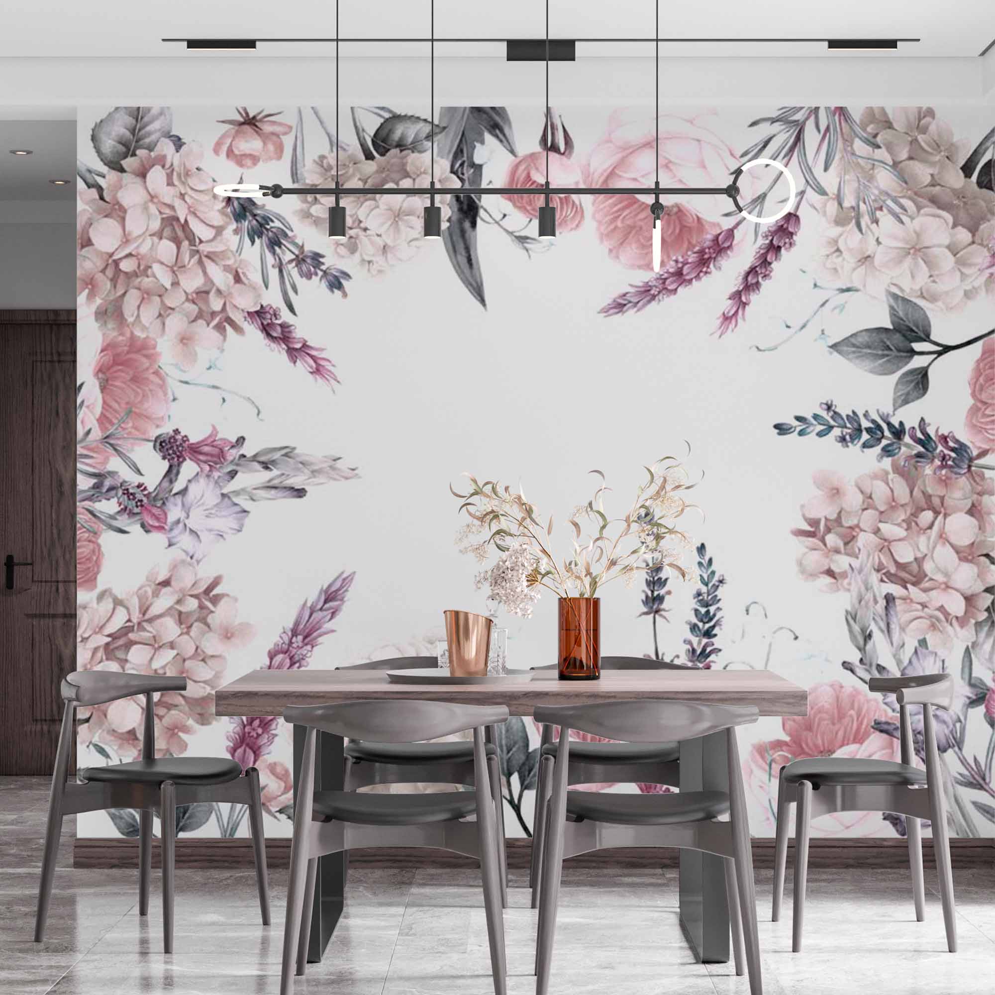 Vintage kwiatowa fototapeta z miękkimi pastelowymi kwiatami na białym tle