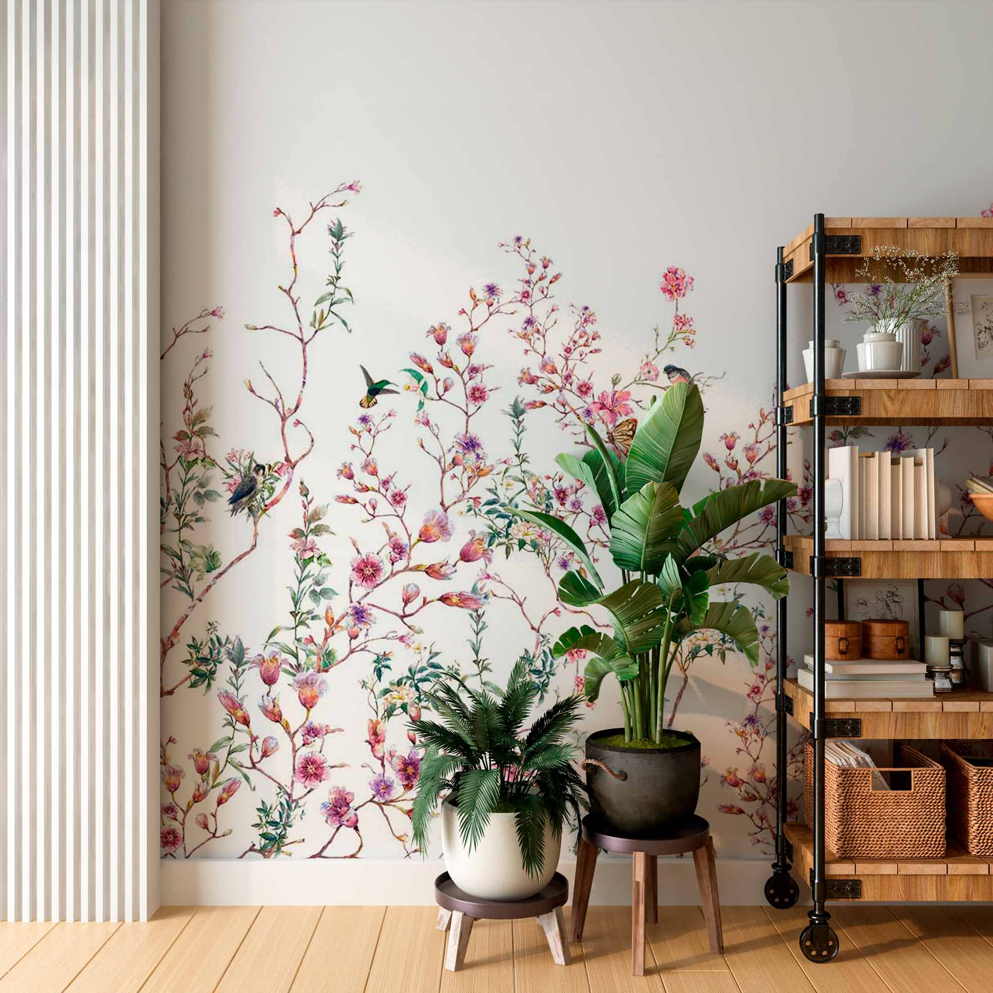 Akwarela kwiatowy bukiet z ptakami fototapeta wiejska tapeta z motywem kwiatowym
